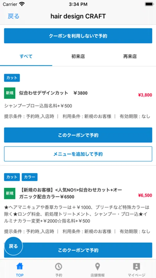 の登録が出来るので前もって担当者を登録しておけばマイページからスムーズな指名予約が可能です。