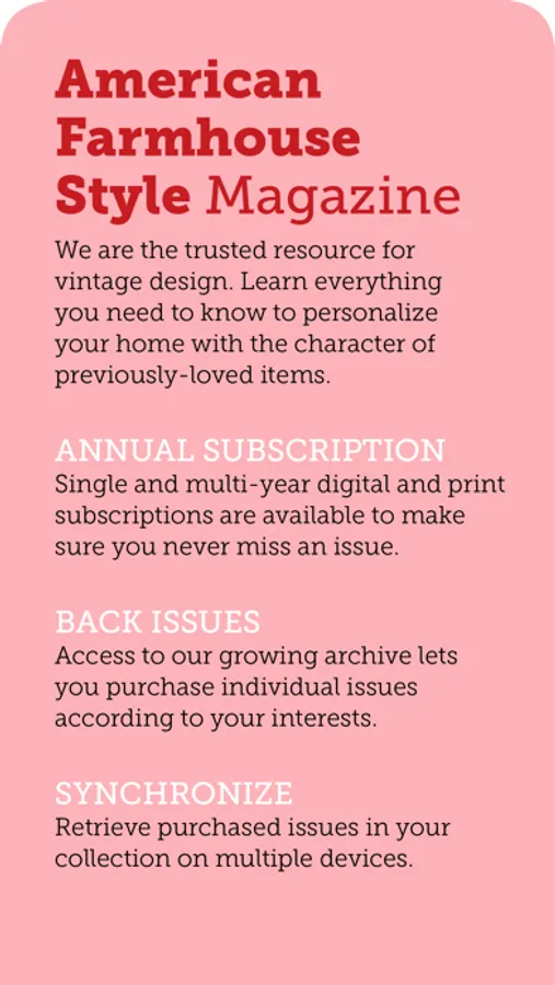 American Farmhouse Style features tips, tricks and tours to give you an inside look into the style and architecture, and help you reach your own decorating goals. We’ll show you the myriad potentials for farmhouse style, including flea market, modern, traditional, barnyard and country cottage.