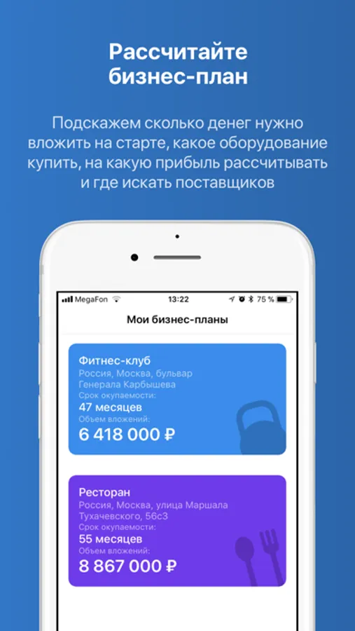 · Бизнес-подсказки. Приложение рекомендует, какие позиции включить в меню/ассортимент магазина, на какой средний чек ориентироваться, и какие компании могут стать вашими поставщиками. Вы получите примерный список документов, которые нужно оформить для открытия бизнеса, и рекомендации по найму персонала.