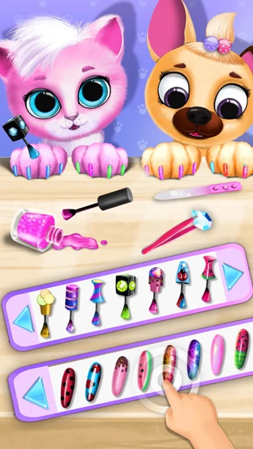 Join the best pet friends Kiki and Fifi in their new pet beauty salon adventures! Wave, curl, straighten and cut their hair. Add hair accessories and create the best hairstyles ever. Decorate pet nails and do the cutest pet manicure. Become a makeup expert and draw Kiki and Fifi's faces. Design your own pet dresses, skirts, blouses, accessories and dress up your cute little pet friends.