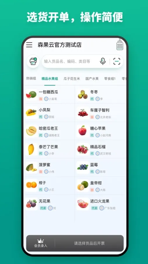 森果开票助手,是森果云专为批发档口提供的高效开单工具,产品使用Saas架构,以移动开单,简单高效为核心,森果开票助手可以通过手机、平板多端操作,随时随地掌握生意数据。