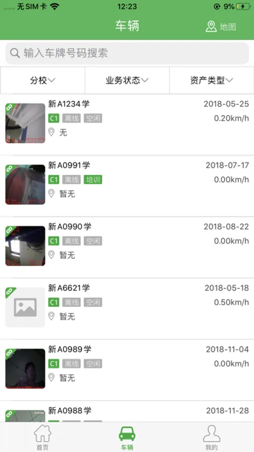 车辆管理:定位教学车辆;查看教学轨迹;实时观看教学视频;教学分析;观看行车影像。