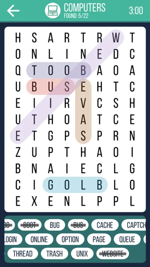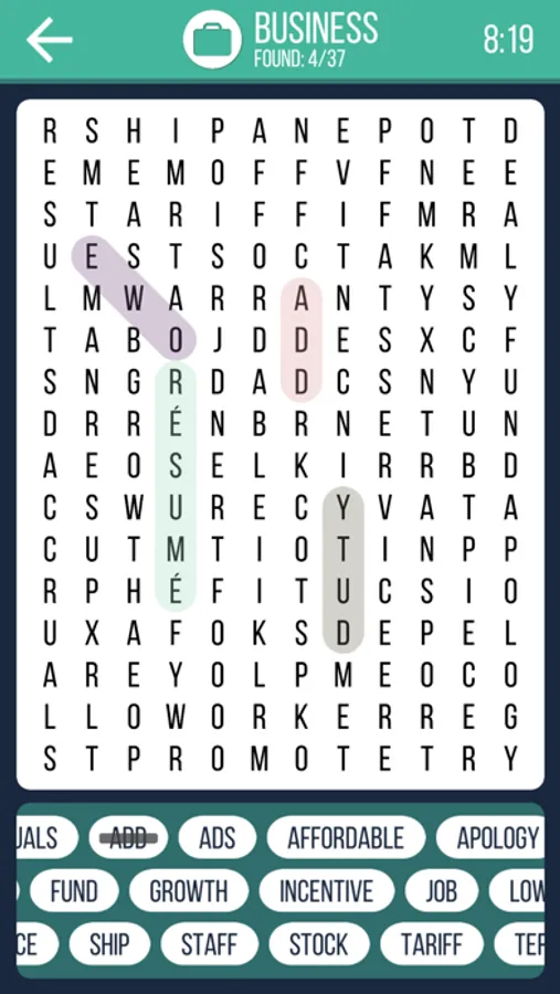 Find the words on the board!There are mixed letters on the board.Find all possible words on the list,then you win!