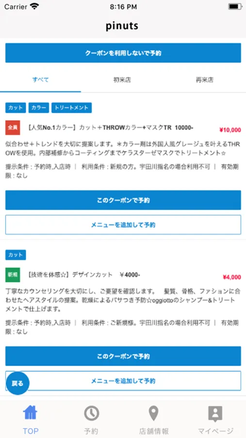 お得なクーポンが配信されます。ネット予約時にクーポン利用での予約も可能なので来店時もスムーズに施術頂けます。