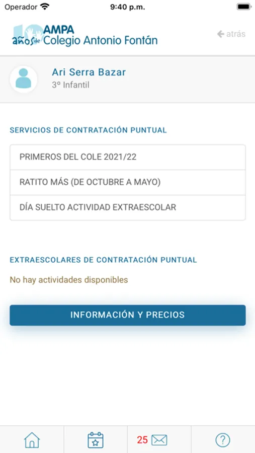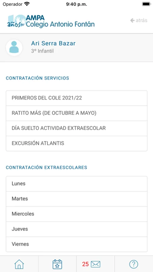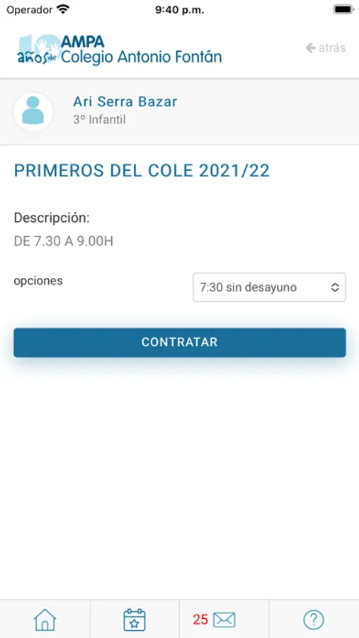 La forma sencilla de reservar actividades extraescolares y servicios ofrecido por la Ampa Colegio Antonio Fontán