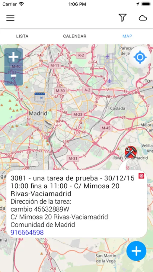 El trabajador puede ver la información de sus tareas pendientes, localizar en un mapa su ubicación, dar de alta incidencias, subir ficheros y fotos, etc.