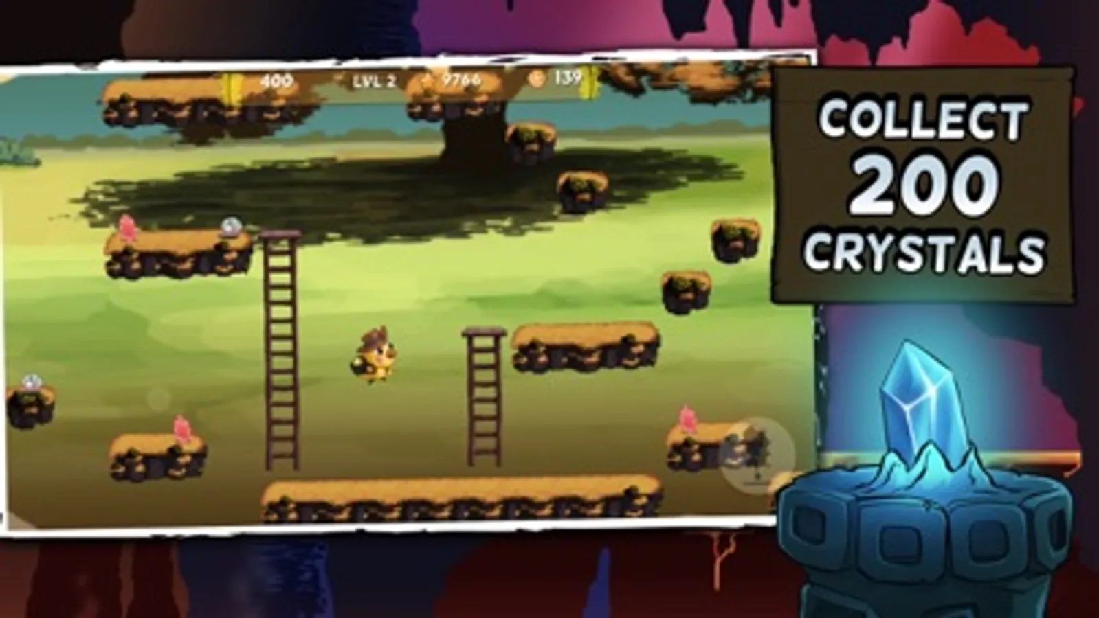 Join Henry as he descends down to the caves and collects, jumps, dodges, and runs his way through the winding, volcanic caverns.