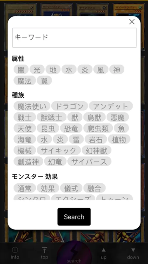 遊戯王デュエルモンスターズの全てのカードをチェックできるアプリです。