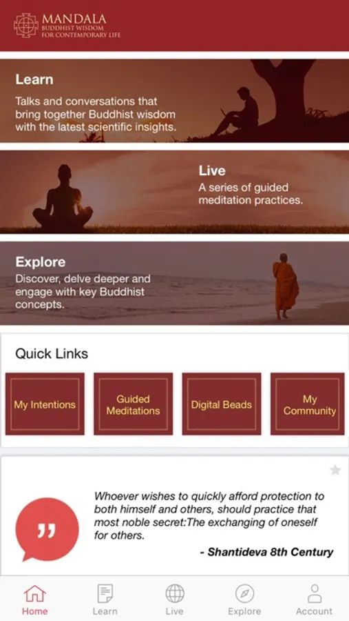 The Mandala app brings together Buddhist wisdom and meditation techniques with the latest insights of psychology and neuroscience to handle the challenges and complexities of modern life.