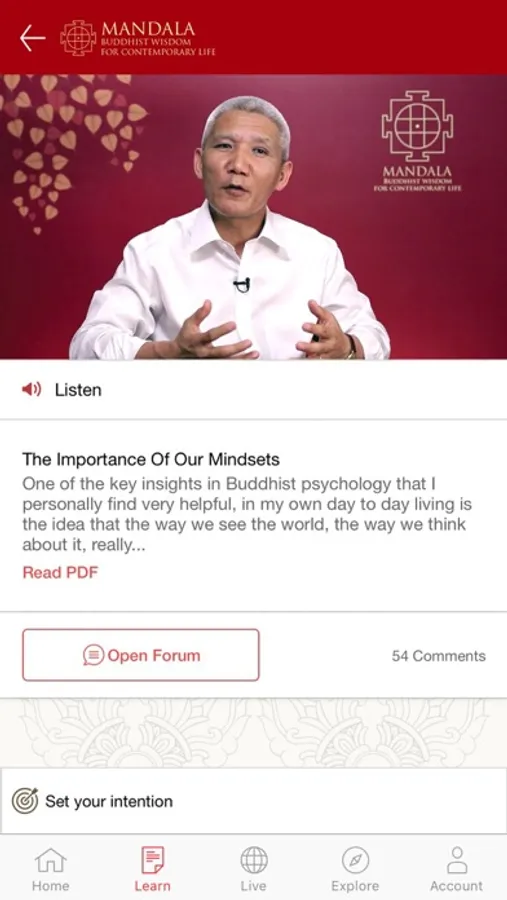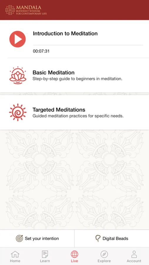 The Mandala app allows you to connect with other subscribers in your region, as well as engage with others in discussions around every topic. It also lets you set and monitor your intentions to help you focus on outcomes. The Digital Bead in the app helps you meditate while commuting or walking.
