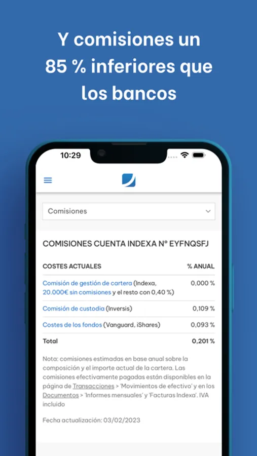 Indexa Capital es el gestor automatizado independiente líder en España. Ofrecemos un servicio de gestión discrecional de carteras, de fondos indexados o planes de pensiones indexados, con diversificación global, con las comisiones más bajas del mercado. Menos costes, más rentabilidad.