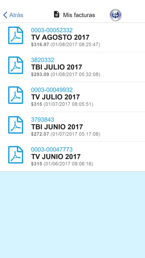 Podrás ágilmente consultar tus últimas facturas de servicios.