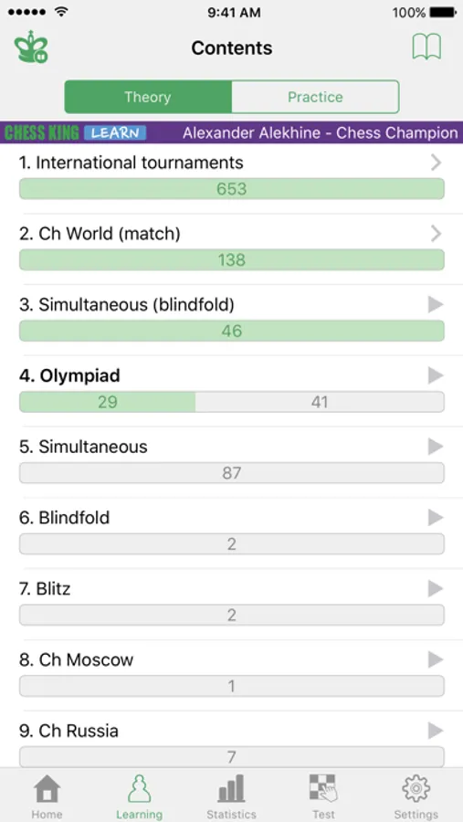 The program also contains a theoretical section, which explains the methods of the game in a certain stage of the game, based on actual examples. The theory is presented in an interactive way, which means you can not only read the text of the lessons, but also to make moves on the board and work out unclear moves on the board.