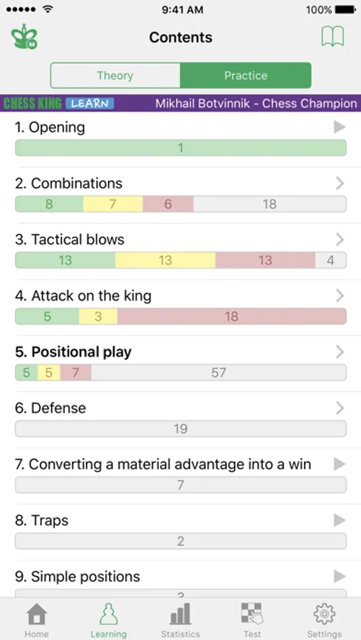 The program also contains a theoretical section, which explains the methods of the game in a certain stage of the game, based on actual examples. The theory is presented in an interactive way, which means you can not only read the text of the lessons, but also to make moves on the board and work out unclear moves on the board.