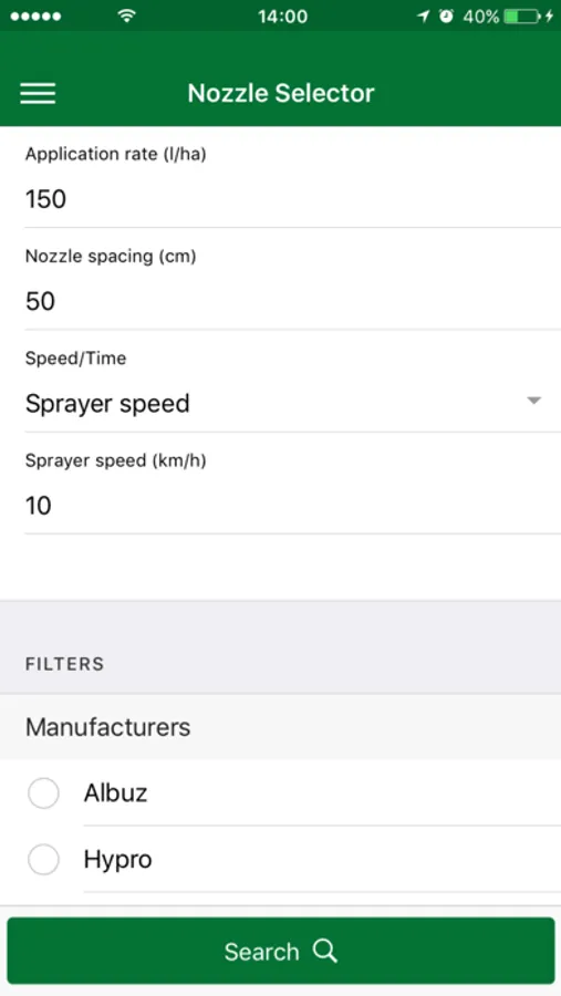 Instead of having to look for the right nozzle in the various catalogs available, ABCpontas can list the most suitable models for the service quickly. It is only necessary to provide the application rate, spacing between the nozzles on the sprayer boom and the desired speed. The list is already ordered, that means the top one is the most appropriate. It has three filters that can be used to refine the search, it is possible to choose the nozzle manufacturer, droplet size and nozzle type. If the application does not find an optimal nozzle, it already offers the user suggestions for changes, such as application rate or speed, for example, to find an option.