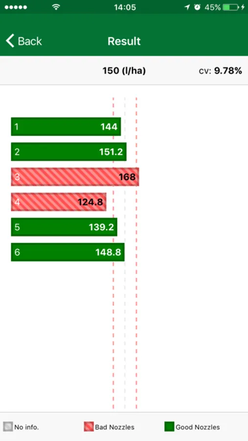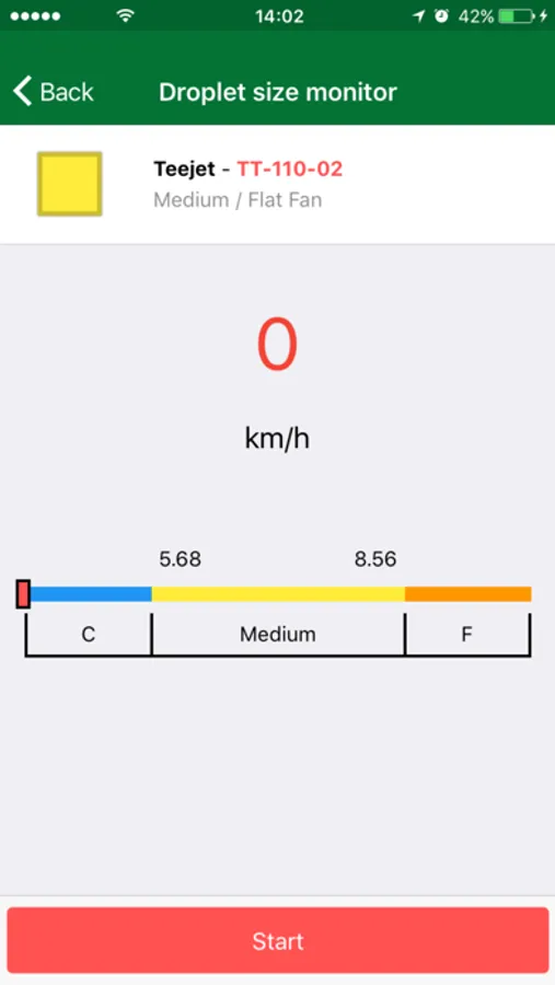 In addition, it has the Speedometer, which allows the user to monitor the droplet size while spraying. Just enter the application rate (L/ha), the nozzle spacing and the chosen nozzle. Then just follow the screen if the drop sizes are ideal, as recommended by the consultant. But for this function you need a device with GPS antenna.