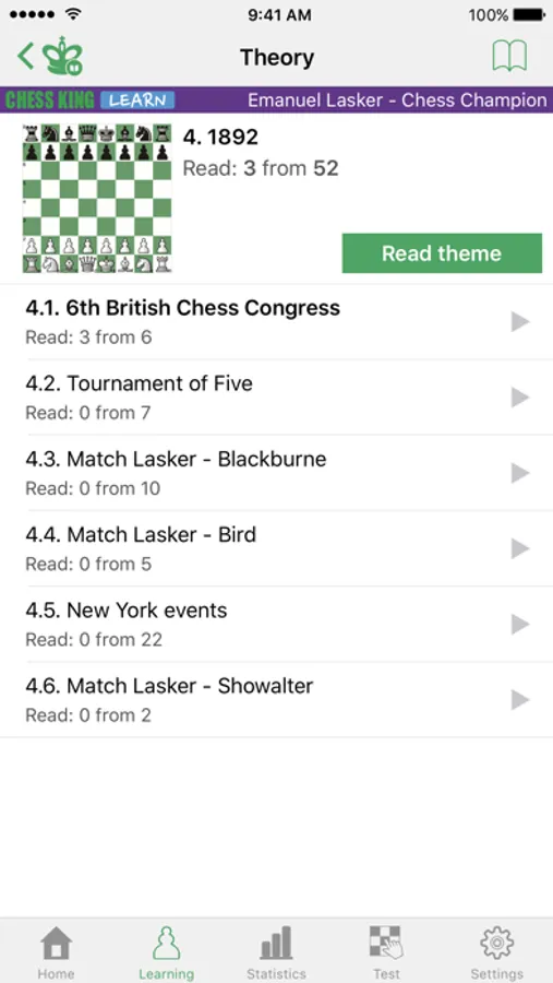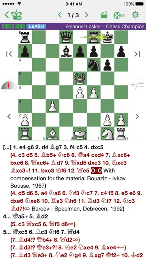 The program also contains a theoretical section, which explains the methods of the game in a certain stage of the game, based on actual examples. The theory is presented in an interactive way, which means you can not only read the text of the lessons, but also to make moves on the board and work out unclear moves on the board.