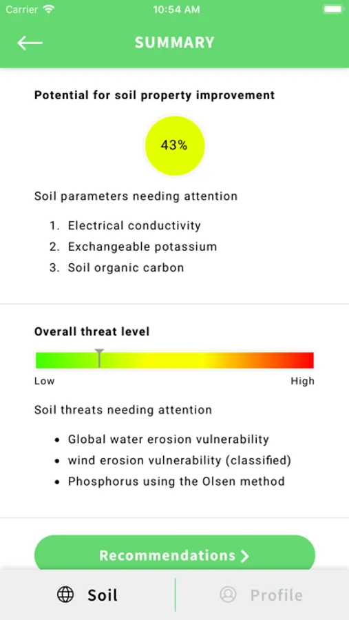 The Soil Quality Mobile App (SQAPP) offers an easy-to-use tool that brings global soil data into the decision-making sphere of land users and other interested end users. SQAPP can, for any terrestrial location in the world for which there are soil data, provide the user with selected soil quality indicators and soil threat indicators. Rather than scoring soil quality in absolute terms, the app scores the soil quality relative to the average soil quality within areas with similar soil and climatic conditions (so-called pedo-climatic zones). For example, 80% means that only 20% of the area of the selected pedoclimatic zone is considered to have a higher indicator value than the point location being assessed. Soil threats are scored based on general, scientifically-derived threshold values. Both soil quality indicators and soil threat indicators with low scores are indicated and management solutions are suggested for the combination of indicators flagged as low in a specific location.