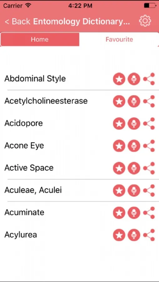 abdomen,acaricide,acariphagous,accessory gland,capitulum,carina,carpophagy,catenulate,ectognathous,emarginate,empodium. Meanings of such terms can be easily found from our app Entomology Dictionary Terms Definitions
