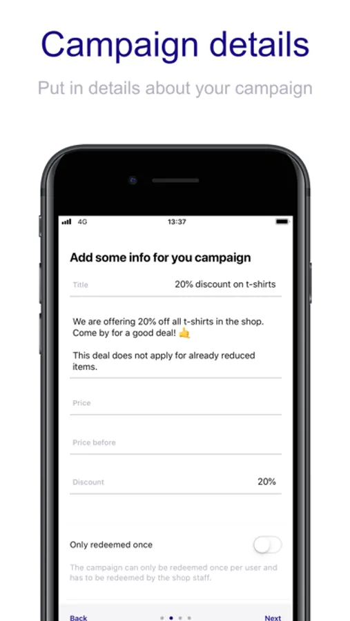 As an employee in a store within a shopping mall using Emplate, you are able to use this app for creating campaigns.