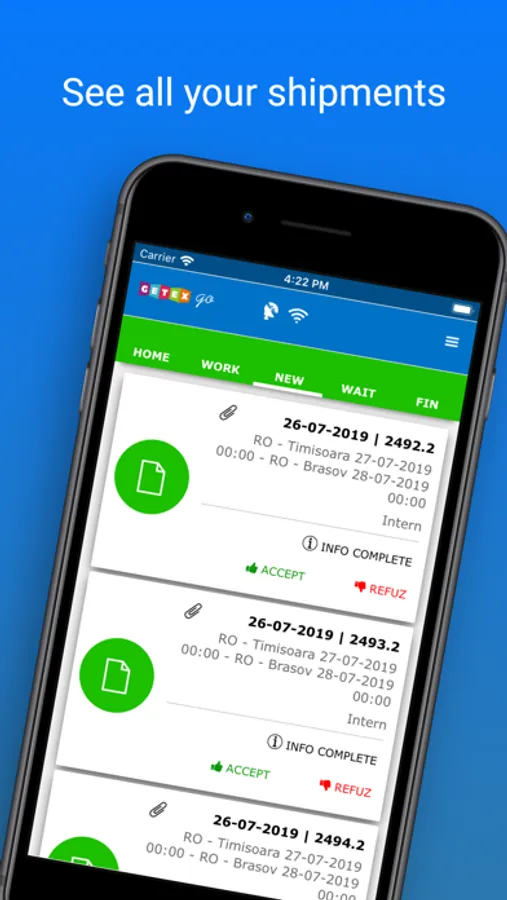 GetexGo is the app which enables the drivers of the companies that are using Getex to see, inspect and report information like: