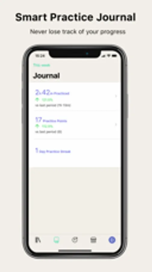Keep all your practice points, sessions and progress in one safe place. Discover how much your weekly, monthly or all time progress has increased and stay motivated by keeping up with your practice streaks. A little practice each day leads to big results and the Smart Practice Journal visualises your progress. Start with your practice session with any of your favourite music pieces and they will be automatically logged into your Smart Practice Journal instantly.
