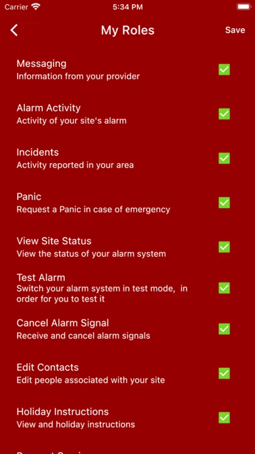 Our app not only functions as a panic button but also as a complete security management platform which you can use to test your alarms, manage your alarms on all your properties, managing the people who have access to your security system, give holiday instructions and much more.