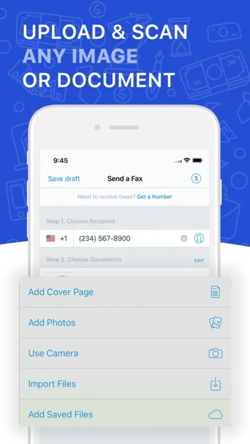 Scan docs with camera and send faxes worldwide. Fast & easy!