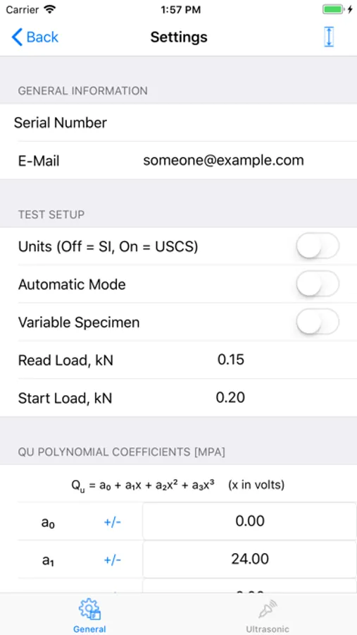 This app also allows the measurement of Ultrasonic P-Wave Velocities when paired with a ULT-2 or ULT-200.