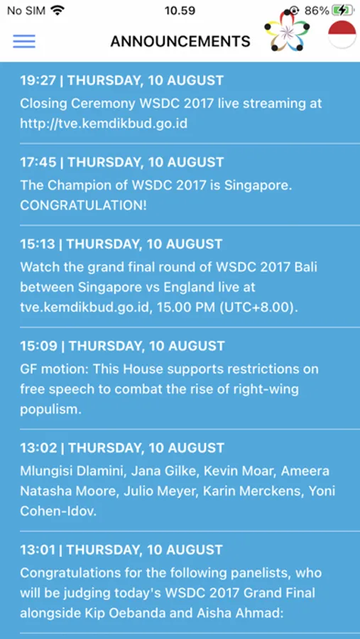 This app accompanied you during the WSDC 2017 event, equipped with the following features: