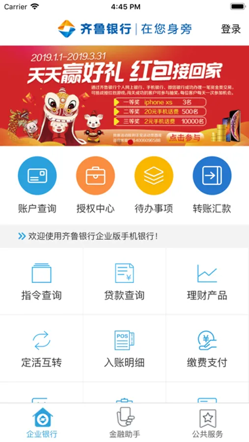 齐鲁银行企业版手机银行是基于齐鲁银行网上银行的相关功能,遵循企业网银相关业务规则、业务流程、审批机制而开发的新一代手机银行产品。该产品围绕“高效、便捷、智能、安全”四大核心目标,操作简单,界面美观,为企业客户提供账户统一管理、移动审批、增值资讯、智能提醒等丰富功能,让客户享受移动金融新体验。