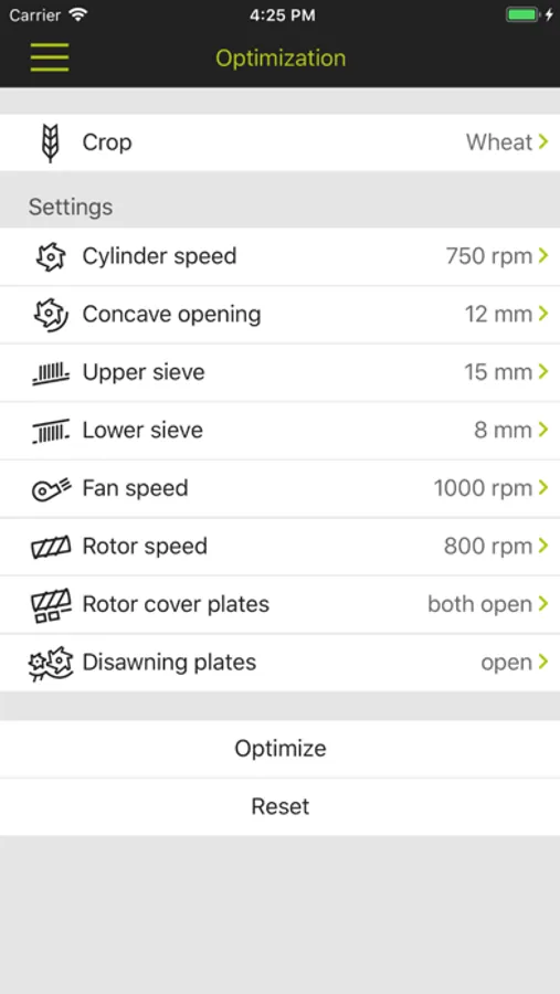 The default values in the crop log for CLAAS combine harvesters provide a useful average for almost all harvesting conditions, but they can be optimized based on crop conditions. The CEMOS Advisor app gives the operator recommendations for optimizing the machine settings during the harvest and can be used with the LEXION model series. The app guides the operator through the configuration and improves performance through incremental adjustments.