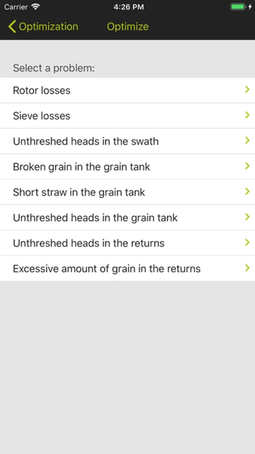 • A problem is detected during the harvest, i.e. high losses