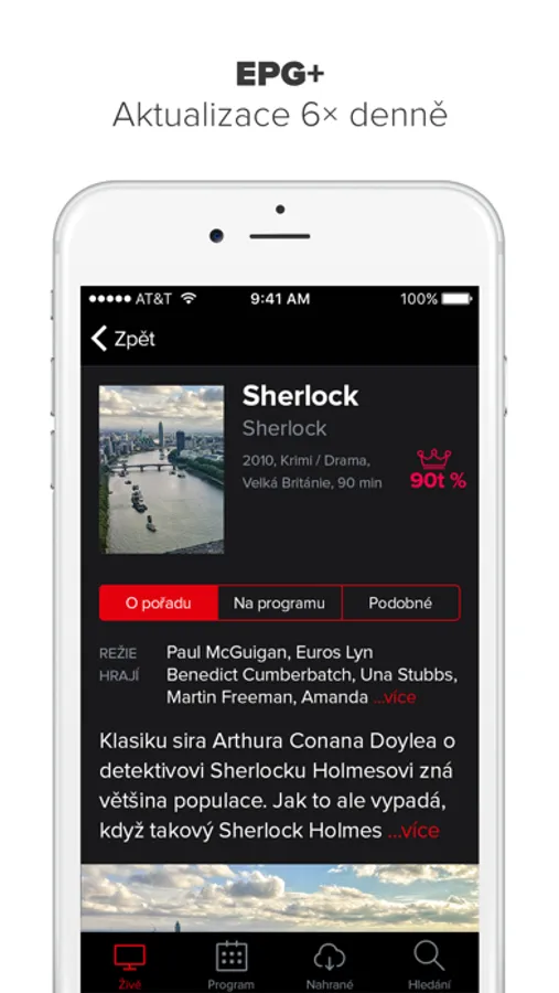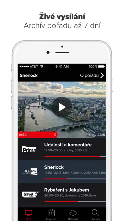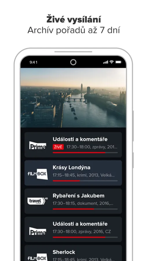 - živé televizní vysílání s možností přehrání od začátku