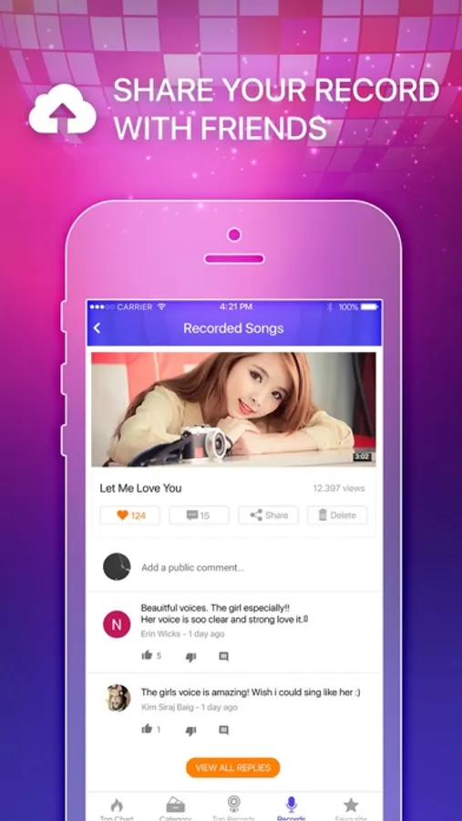 The karaoke app also lets you sing karaoke along with your friends, share your music with friends.