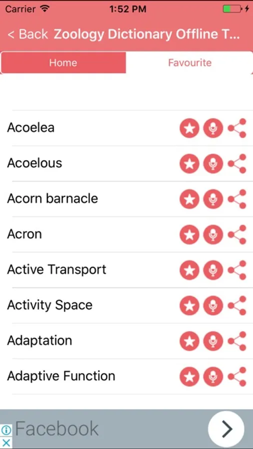 Active Transport,Activity Space,Adaptation,Adaptive Radiation,Batesian Mimicry,Beak,Benthic,Beta Diversity,Bilateral Symmetry,Carnasial Tooth,Carnivore,Carrying Capacity,Caruncle etc. Meanings of such terms can be easily found from our app Zoology Dictionary Terms Concepts