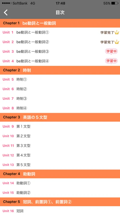 ※ 1週間1ユニットを目安に学習していけば、約1年間で英文法をマスターできます。