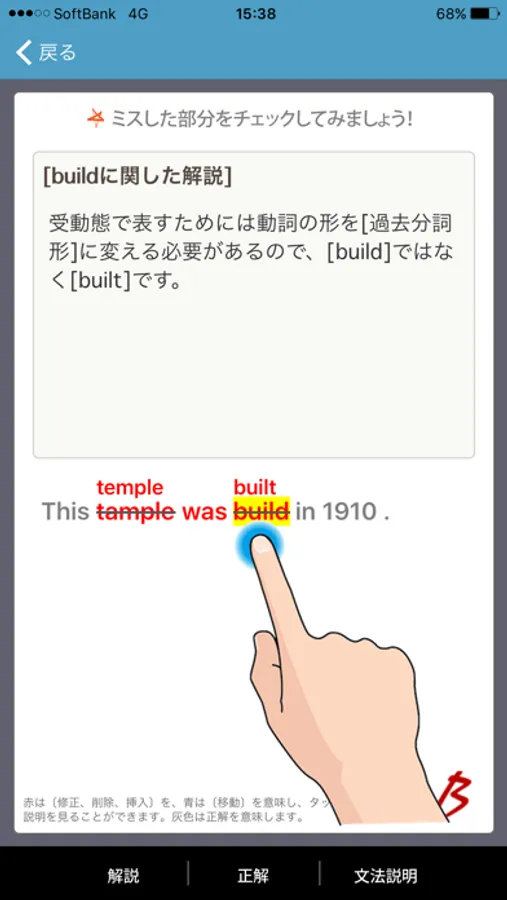 ・ 間違えたスペル、形態、文法、熟語、語順を直してくれるのはもちろん、詳細な解説と文法説明まであります。