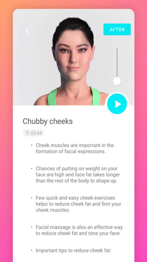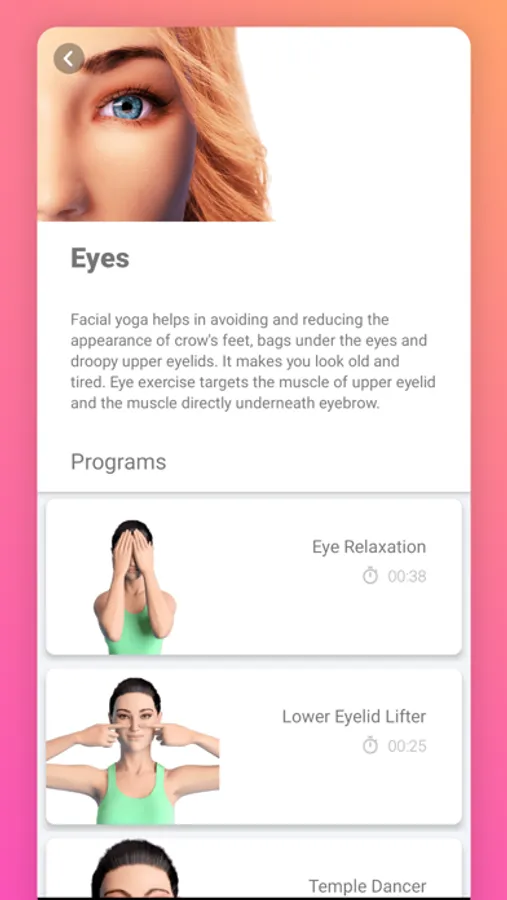 Facial Yoga has each exercise illustrated with a high quality animated video, audio, and textual description of ‘How to do?’.