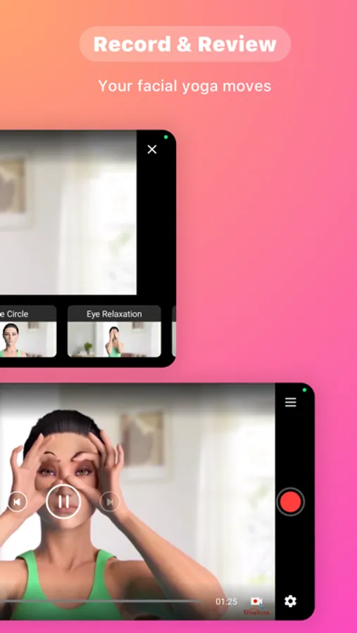 * VIDEO SELFIE: Perform, record, review, and master each of the facial yoga moves along with the in-built yoga trainer.