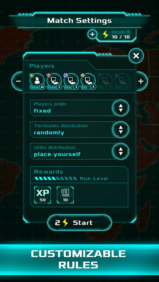 ► Match statistics (territories, units, reinforcements, dice results, ...)