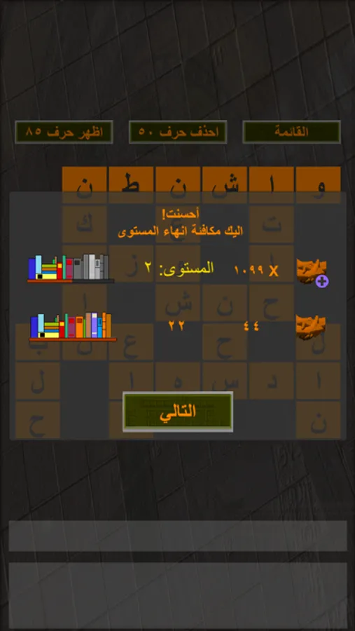 سوف تكافأ عند حل الكلمات بعملات يمكنك استخدامها في اظهار حروف أو كلمات لمساعدتك في انهاء المستوى، كما ستكافأ عند النتهاء من اللعبة بالمزيد. ويمكنك اذا انتهت منك العملات الحصول على المزيد.