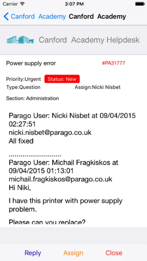 Extra information about the asset can also be identified in the Parago premises manager application.