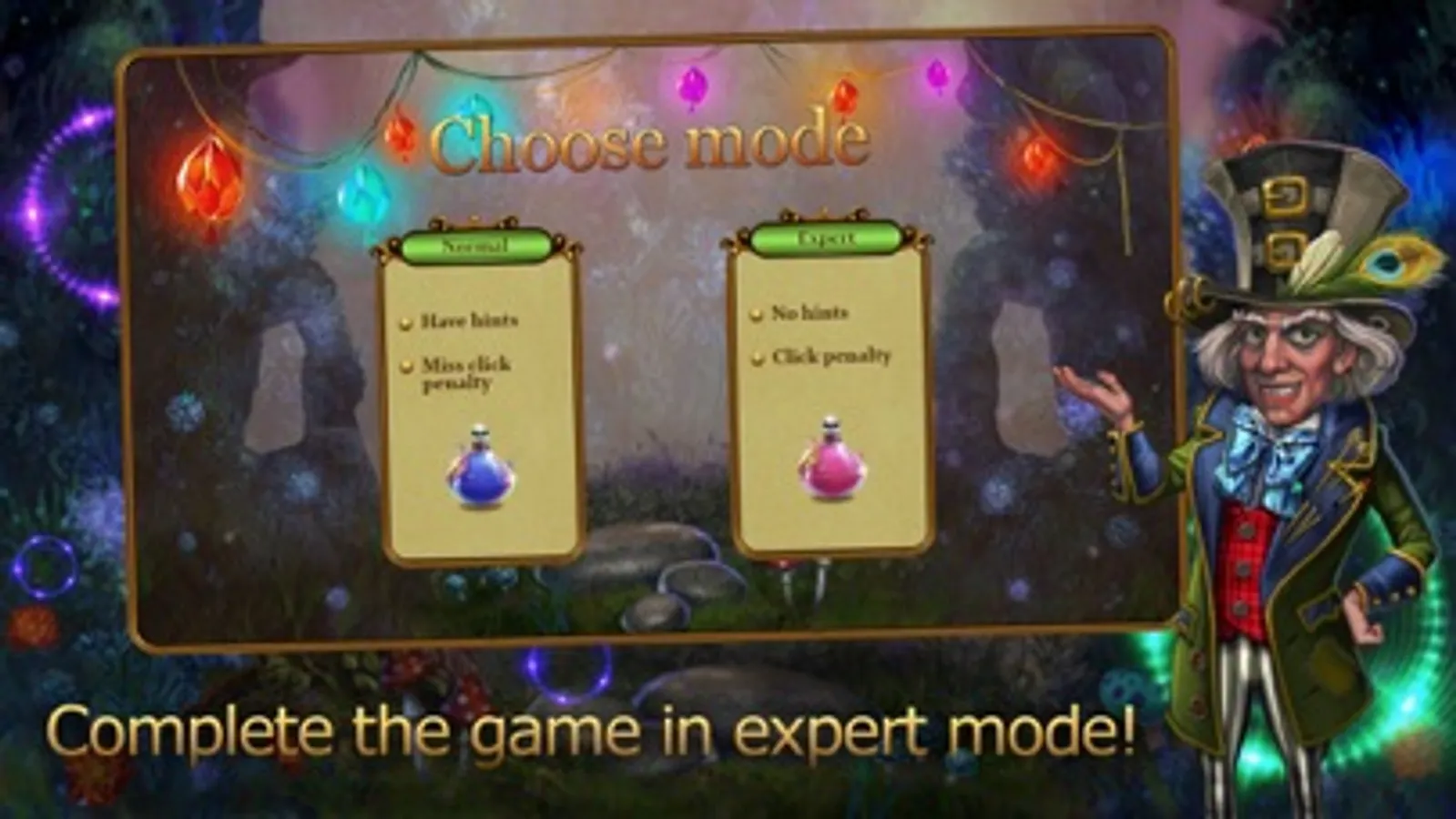 Difficulty levels in the casual game "Alice in Wonderland: Find the item" are calculated for both a novice detective and a real pro who will be able to complete all the quests for a while.