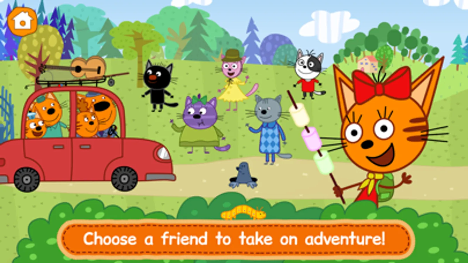 Some feline friends from the popular cartoon "Kid-E-Cats" are heading out of town. They want to have a picnic and you're invited too!