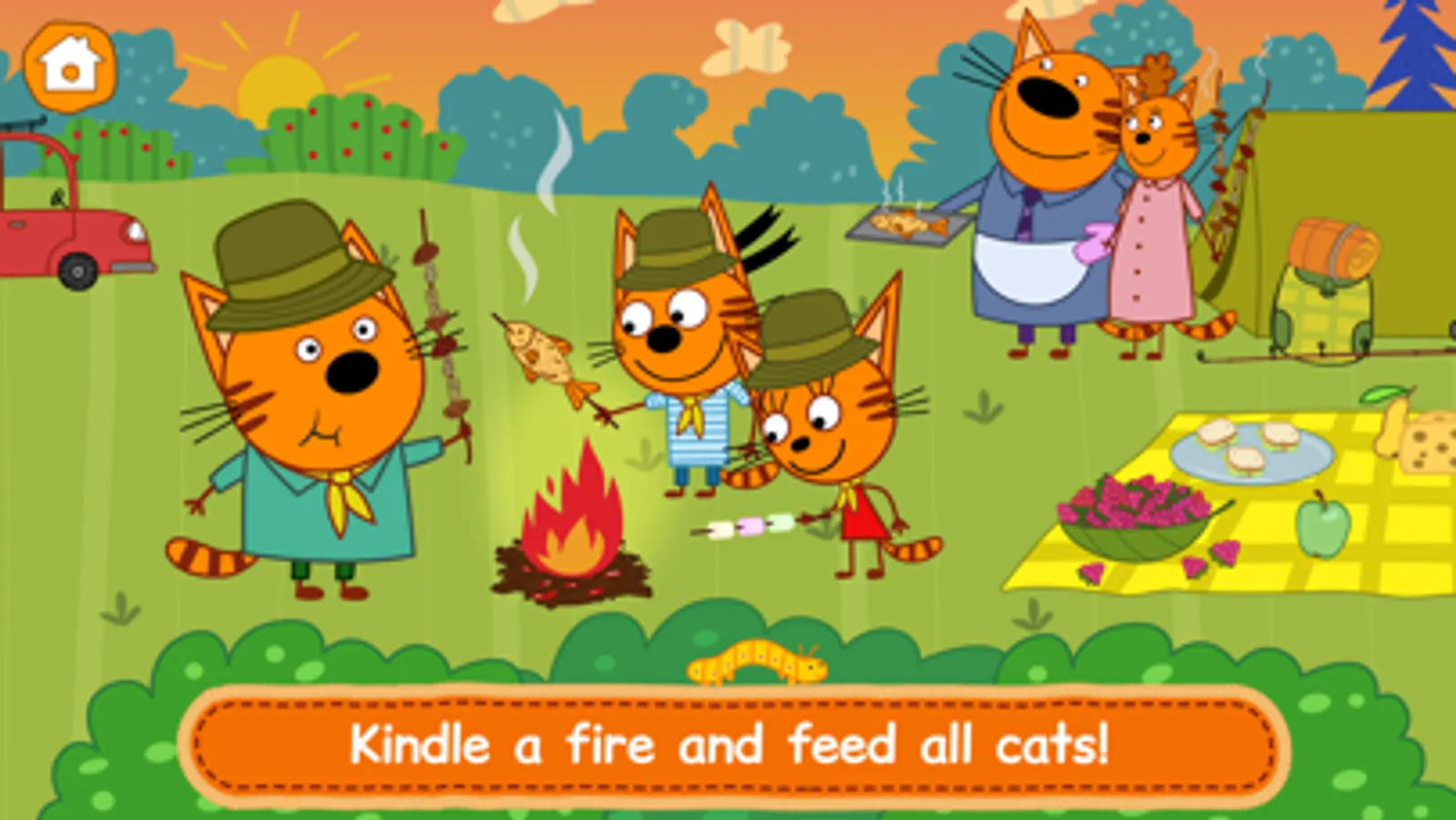 Lay the table on the spot, catch fish, collect berries or mushrooms, play with butterflies and feed every member of the cats' family!