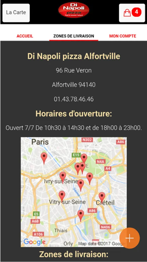 L'application Iphone/Ipad de Di Napoli pizza Alfortville vous permet de commander en ligne ou par téléphone via votre application . Vous pouvez consulter notre carte et choisir vos produits .
