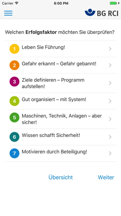 Betriebliche Praktiker und Präventionsexpertinnen und -experten der BG RCI haben Checklisten erarbeitet, mit denen Sie jeden Erfolgsfaktor systematisch in Ihrem Betrieb umsetzen können.
