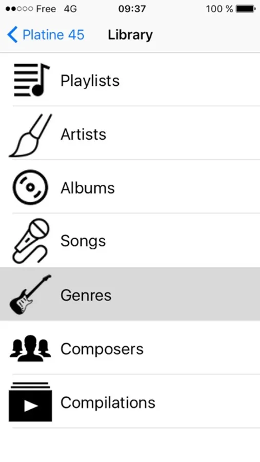 - Access your music library by pressing the icon at the bottom right of the screen.