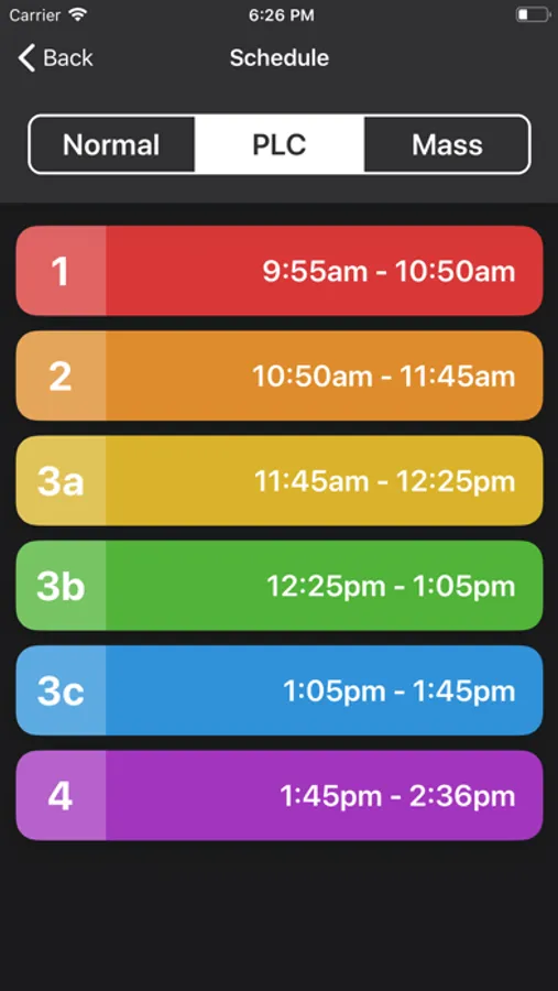 View the schedules for each period, including PLC and Mass schedules.